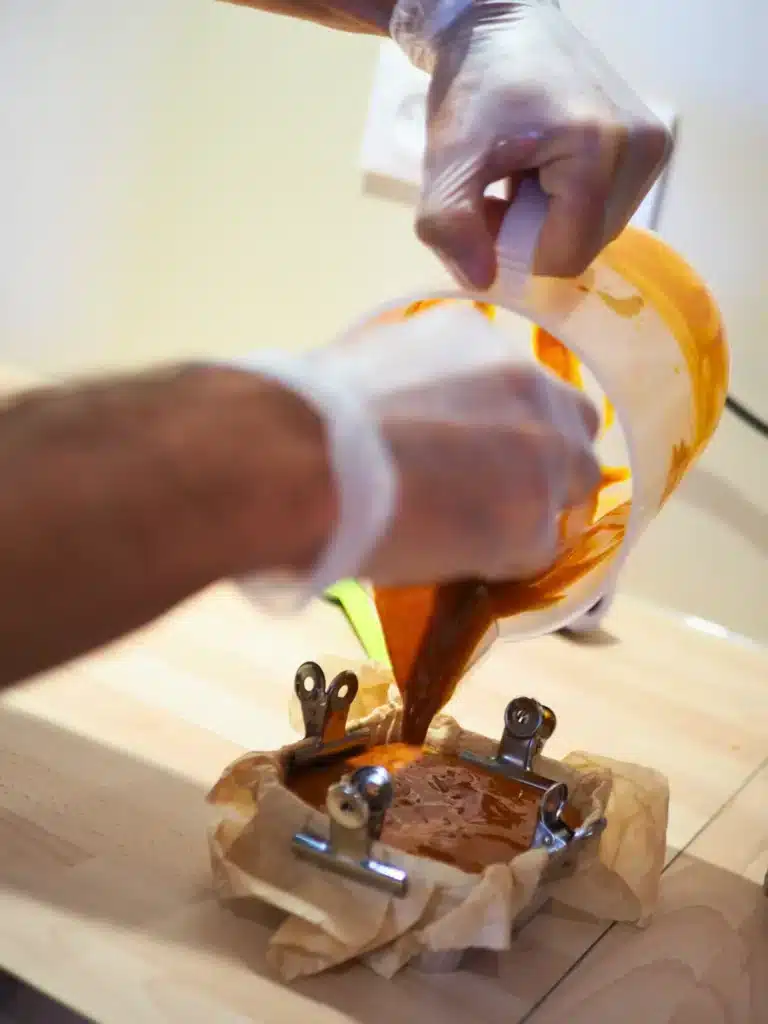 L’atelier débute par une session théorique. Un passage indispensable pour comprendre comment réaliser un savon maison, et par quel procédé magique a lieu ce qu’on appelle “la saponification à froid” ! Une technique ancestrale qui préserve les bienfaits des ingrédients naturels pour la peau. Karine vous transmettra son savoir sur des principes de base de formulation sur le savon, mais aussi comment bien choisir son savon et les règles de sécurité essentielles à respecter avant de passer à la pratique.